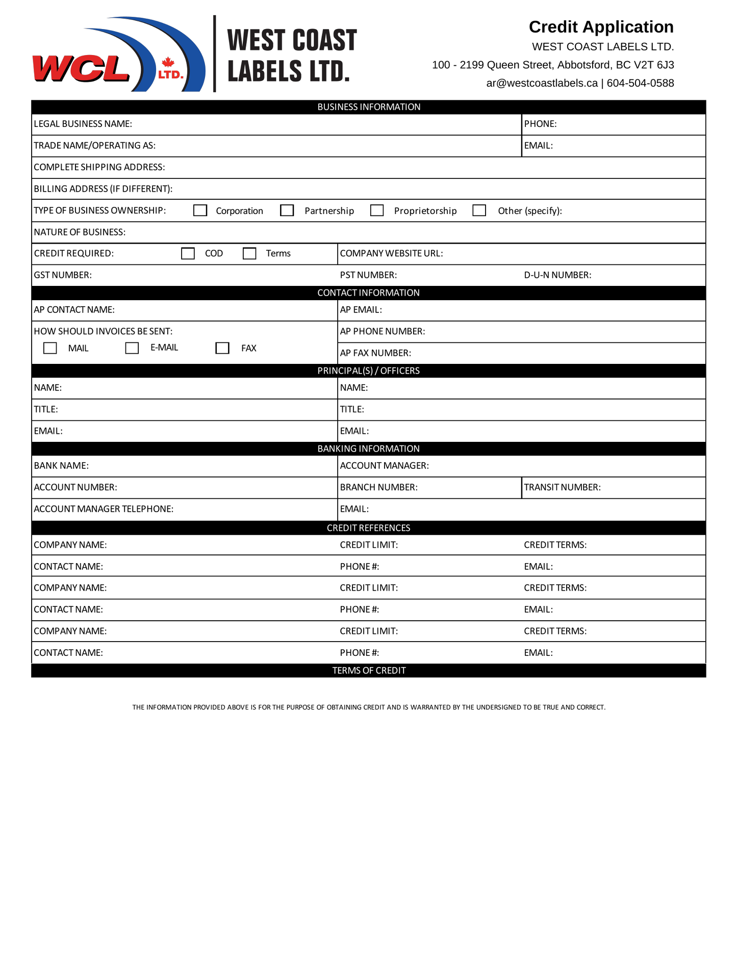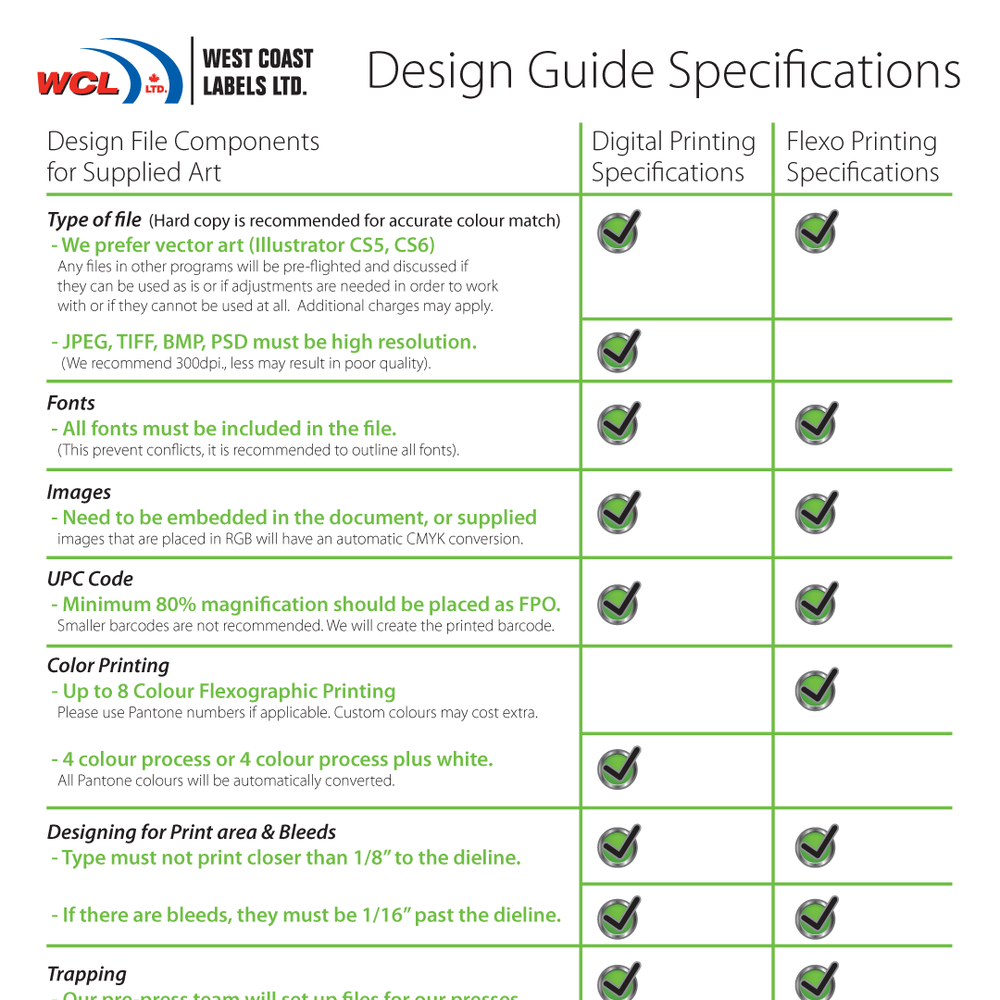 West Coast Labels is not responsible for any errors, omissions, or inaccuracies in the information provided on your labels, including but not limited to compliance with CFIA regulations, nutritional data, barcodes, or other required details. It is the sole responsibility of the client to verify the accuracy and regulatory compliance of all label content before production and distribution.